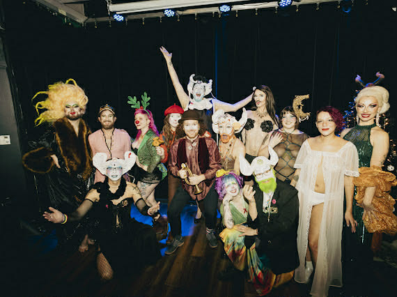 Les soeurs et les artistes lors de la soirée Cabaret burlesque de la Saint SIDA 2025. Crédit photo: Alexandre Cotton.