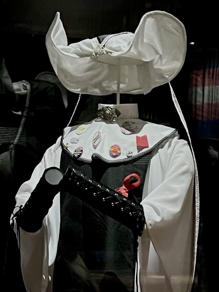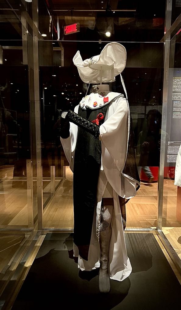 Ceremonial habit of the Sisters of Montréal, lent to the Museum for the duration of the exhibitionSisters Marie Félicité du Mont-Royal, Cherry and Kiss A Ring at the MBAQ in Québec City.