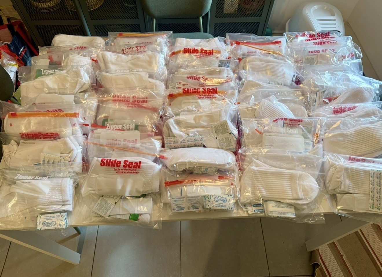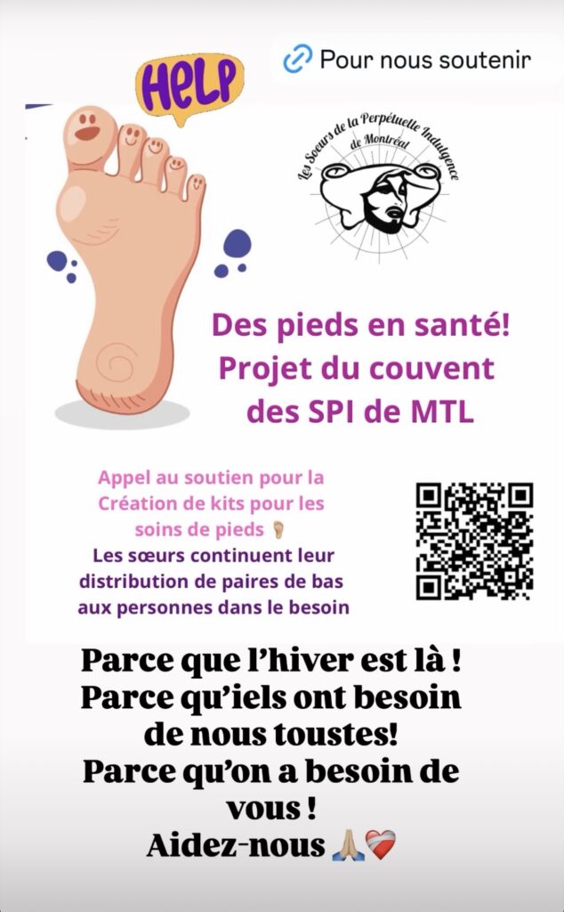 C’est plus de 120 kits de soins (pansements, lingettes et paires de bas) qui ont été distribués entre novembre et décembre 2025. Ce projet, initié par notre novice Enola Nox, se poursuivra en 2026, compte tenu des besoins grandissants des populations itinérantes à Montréal et ailleurs au Québec.